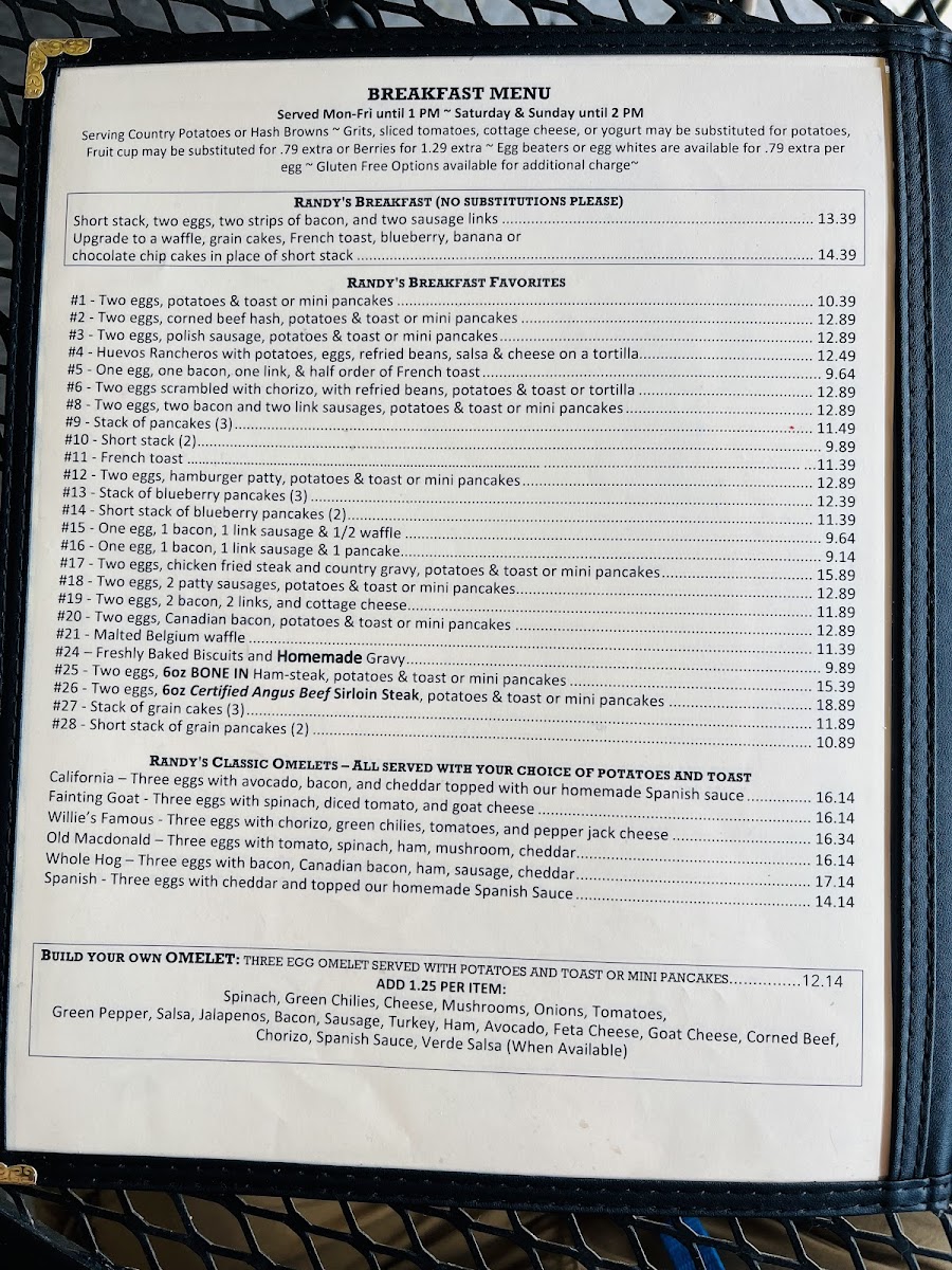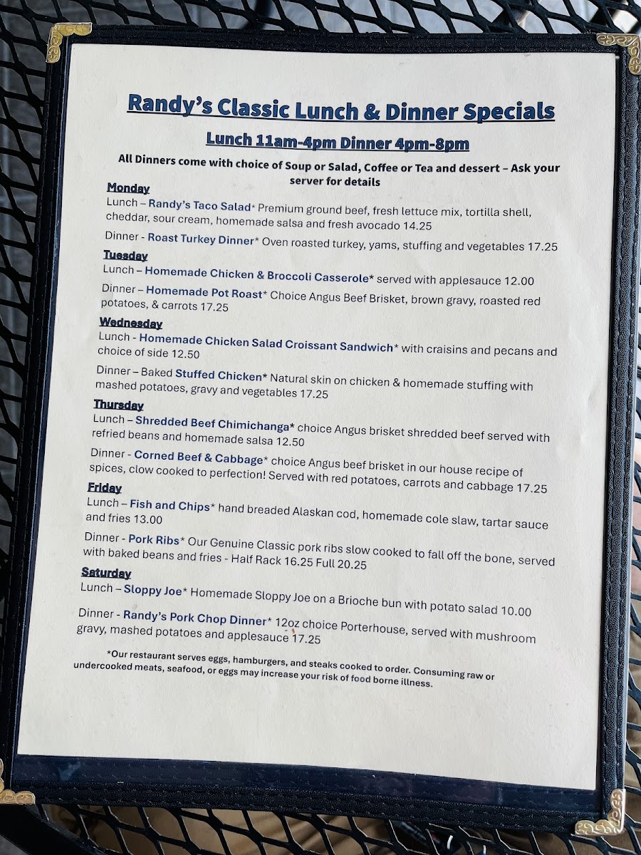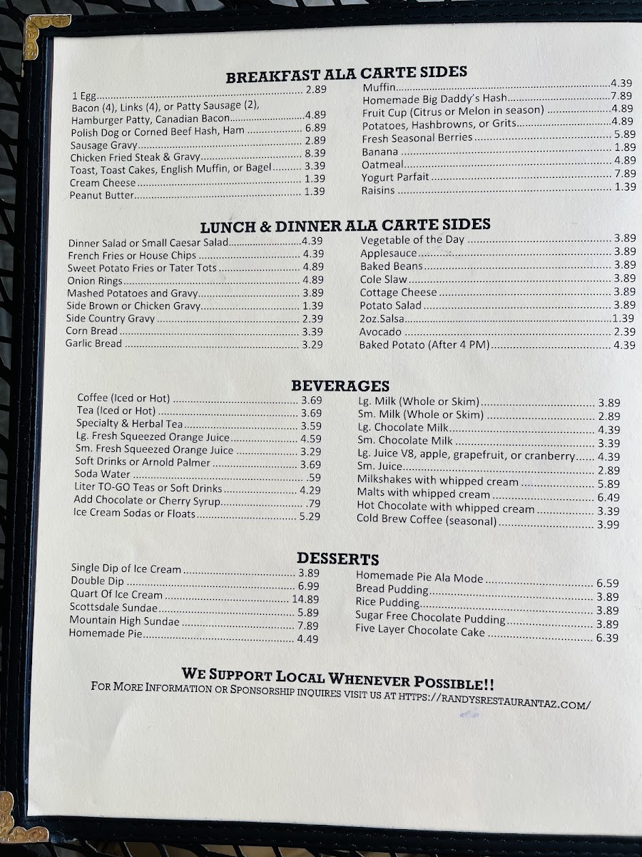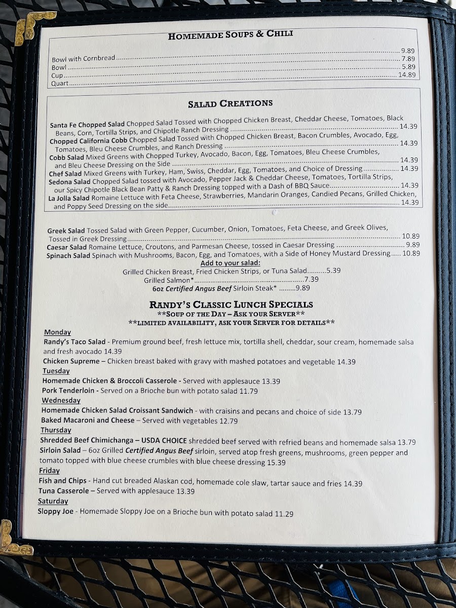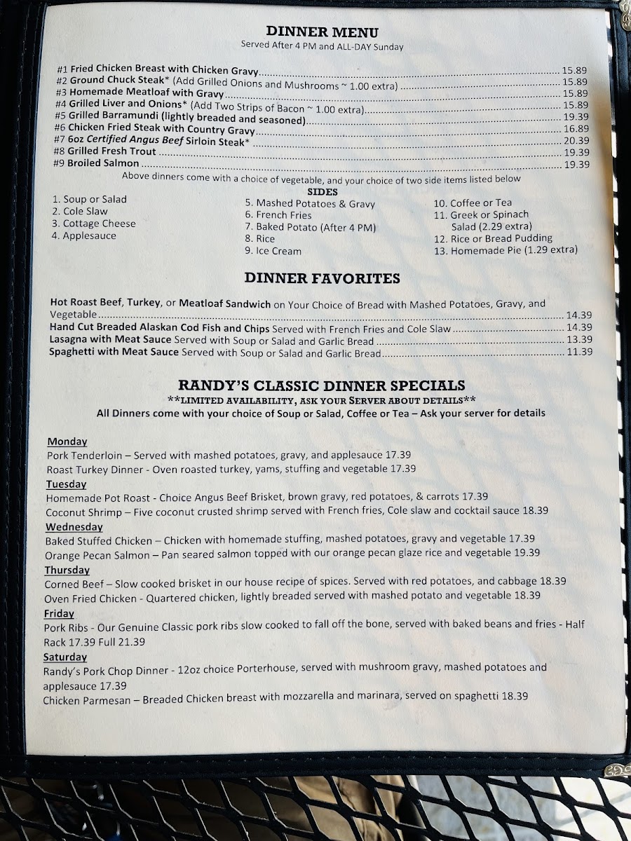 Randy's Restaurant & Ice Cream Menu